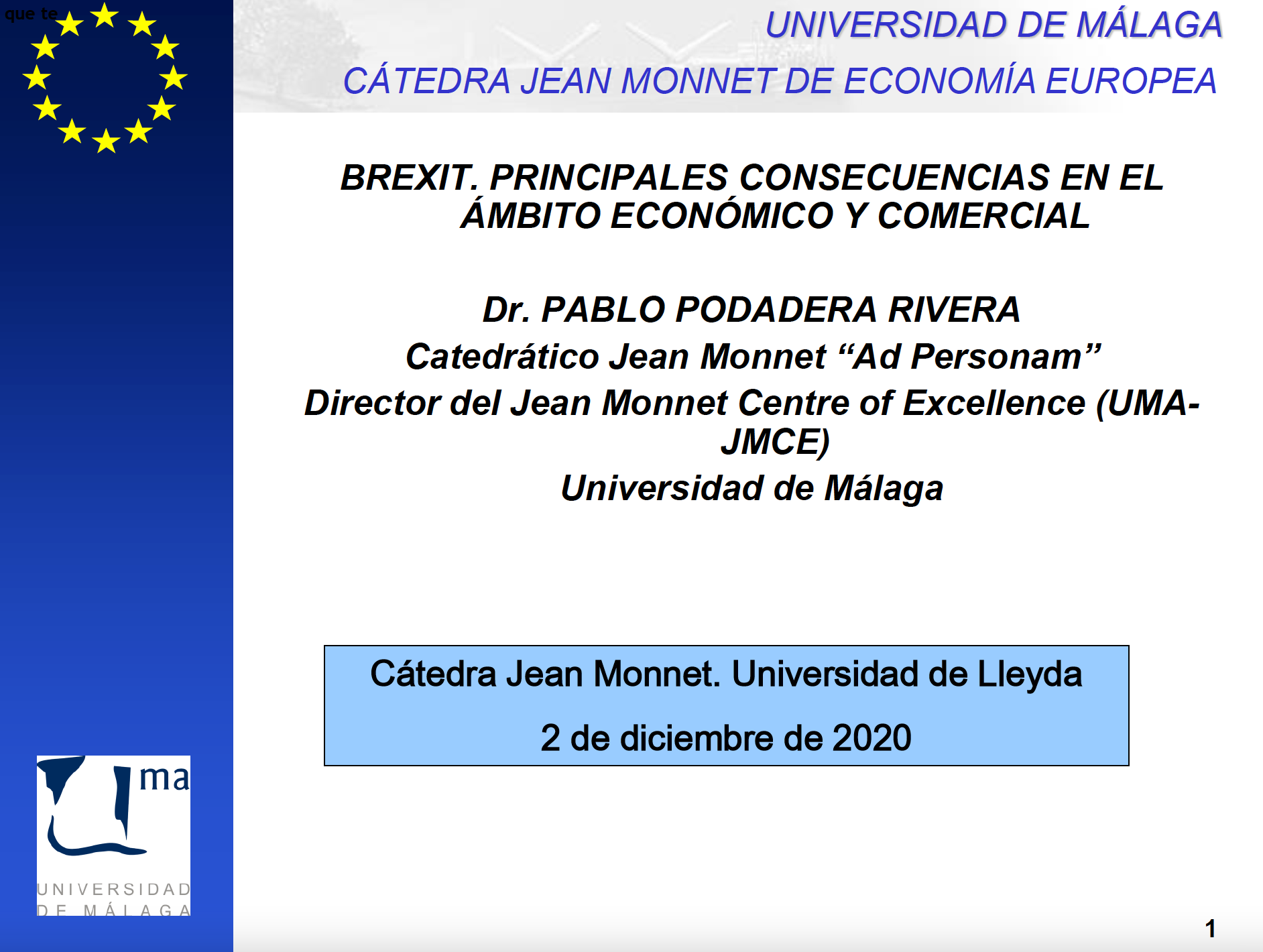 Seminari: La Unión Europea y el multilateralismo 2020 El BREXIT i les seves conseqüències per al futur de la Unió Europea Contribució de Belén Becerril BREXIT: Principales consecuencias en el ámbito económico y comercial Contribució del Dr. Pablo Podadera Rivera Las Naciones Unidas en su 75 aniversario: Logros, carencias y retos en materia de mantenimiento de la paz y de la seguridad internacionales Contribució de Joaquín Alcaide La UE, promotora del multilateralismo: la cooperación con las Naciones Unidas y las amenazas al multilateralismo Contribució del Dr. José Luis de Castro Ruano